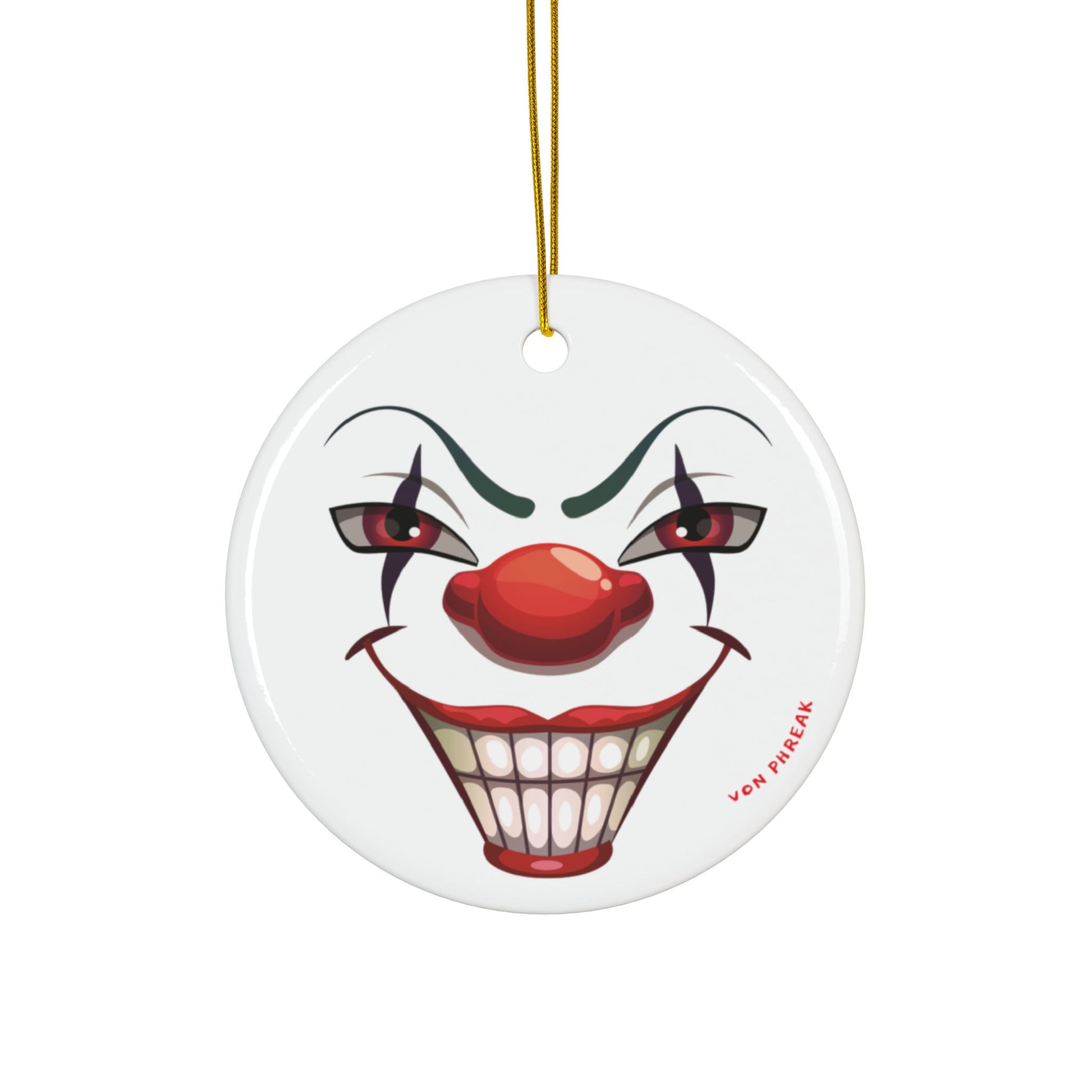 Psycho Clown Ceramic Ornaments are unique decorations and collectible items, perfect for holiday decor, gifts, and party favors. The vibrant colors and glossy finish make them stand out in any setting. Ideal for those who appreciate quirky and fun designs, these ornaments are a must-have for Halloween, Christmas, or any festive occasion.